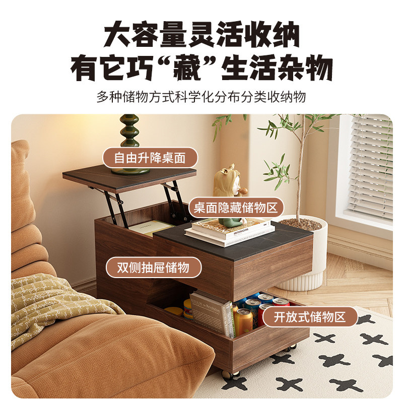 淘宝优居尚选,实木折叠升降可移动沙发边几