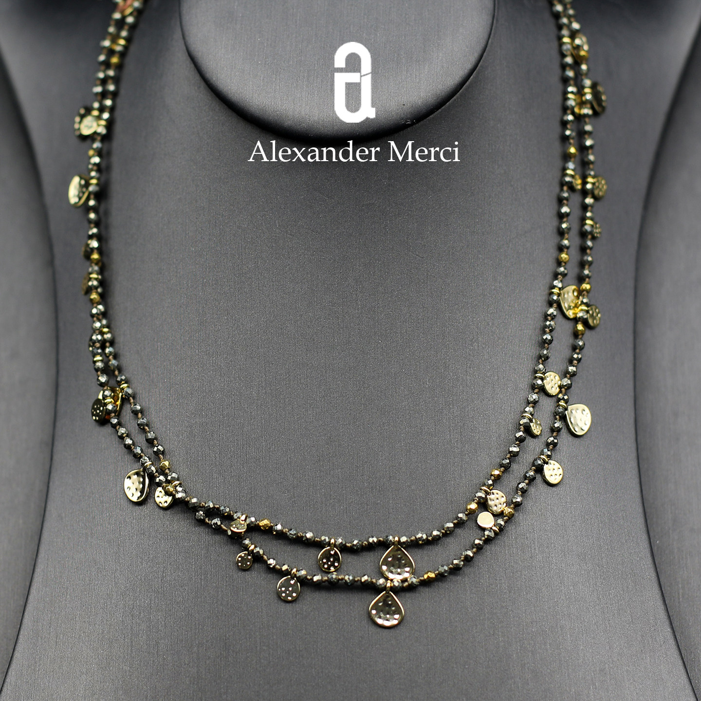 淘宝安晴LOVELY高定私服,希腊MG订单小众复古手工锤痕金币天然石镀18K金项链 AD25S112311