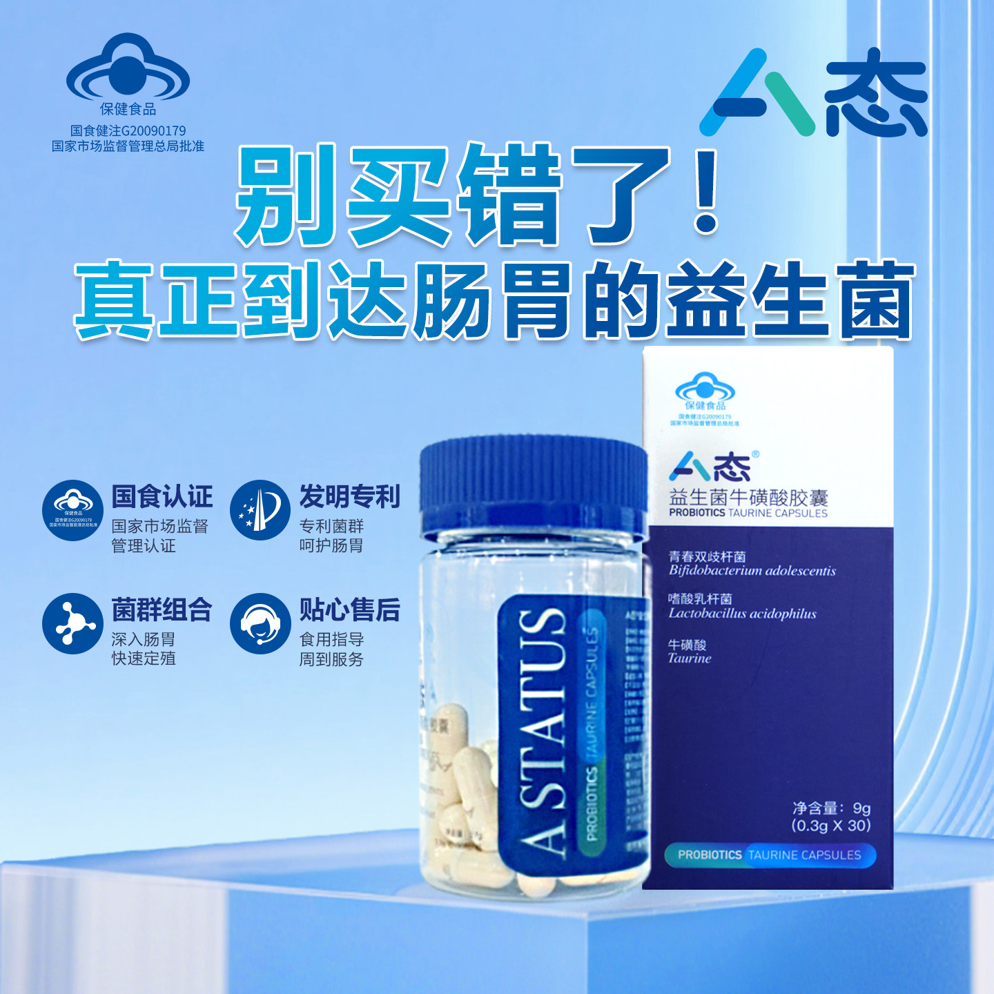 淘宝A态官方自营店,A态 益生菌胶囊成人调理肠道保护肠胃蓝帽保健食品非冲剂30粒/盒