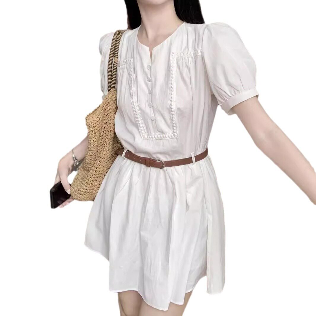 淘宝型格君霖女装小店,拼接白色短袖连衣裙女夏季新款连衣裙2026正流行收腰气质A字短裙