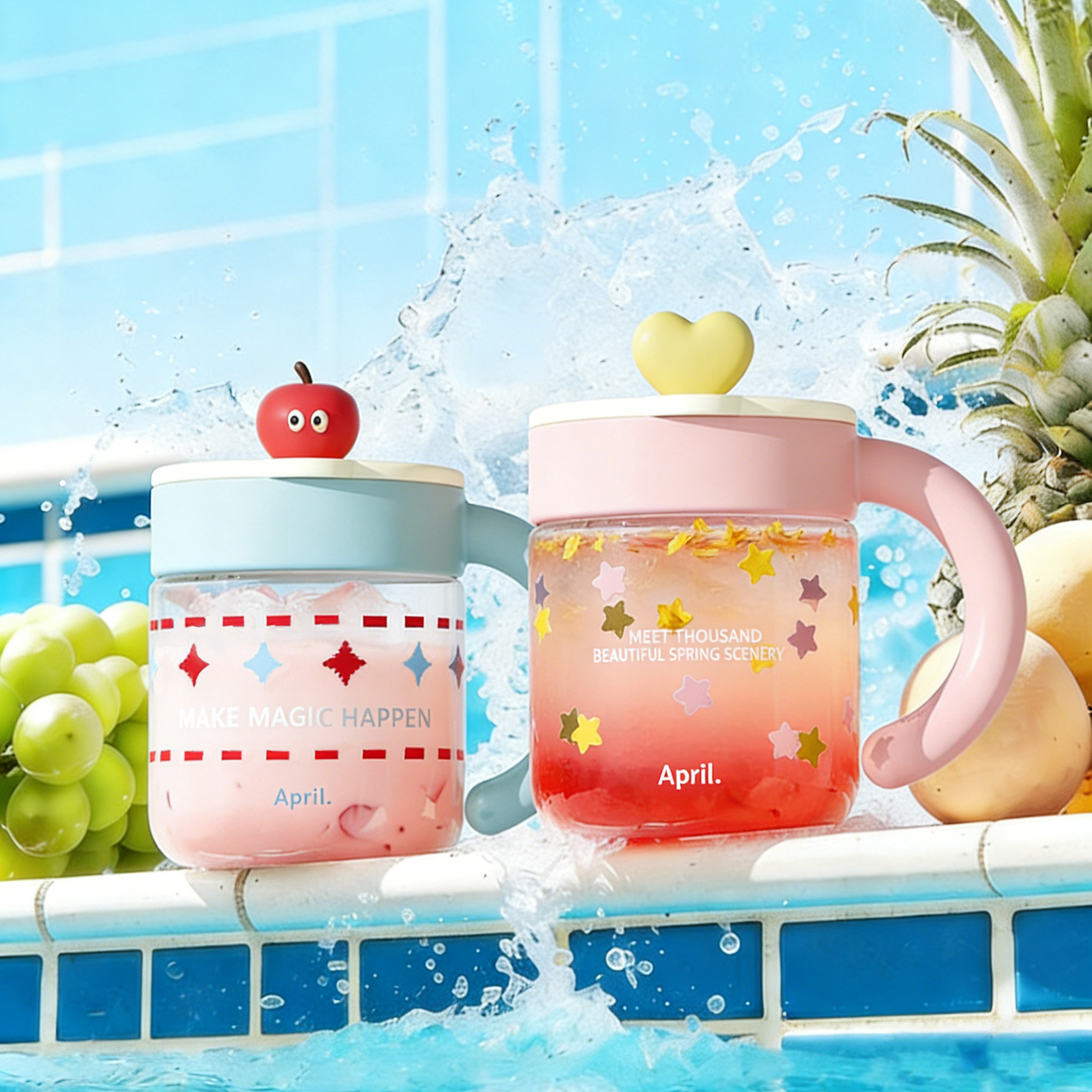 天猫4656934100590089867,April玻璃马克杯高硼硅,高硼硅玻璃 原创设计 带把手 带盖