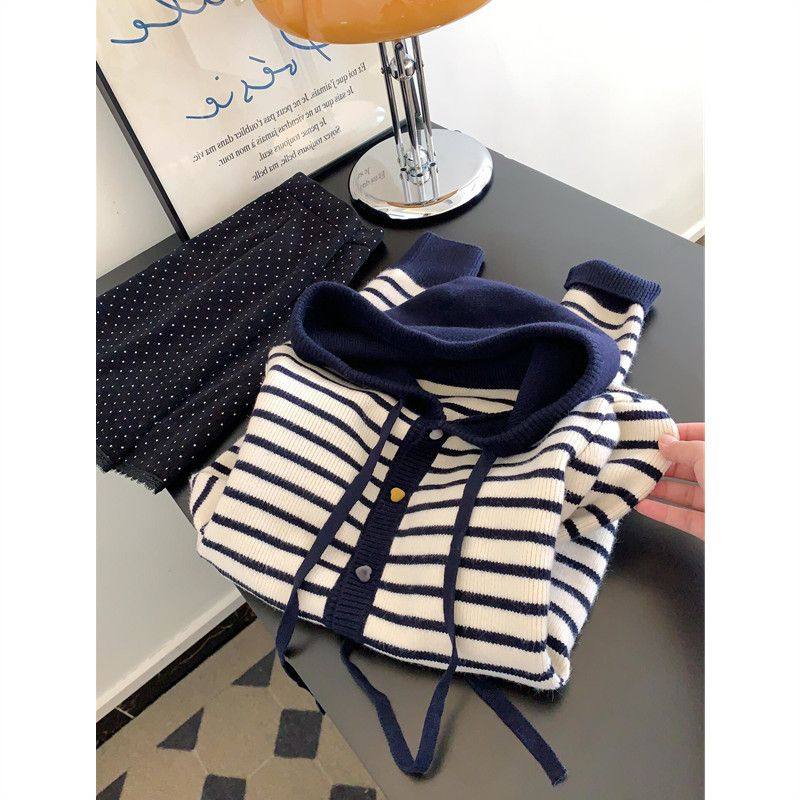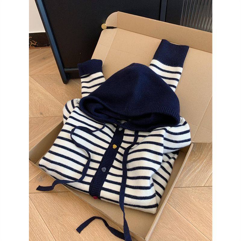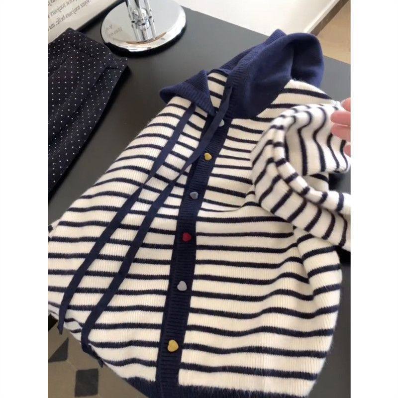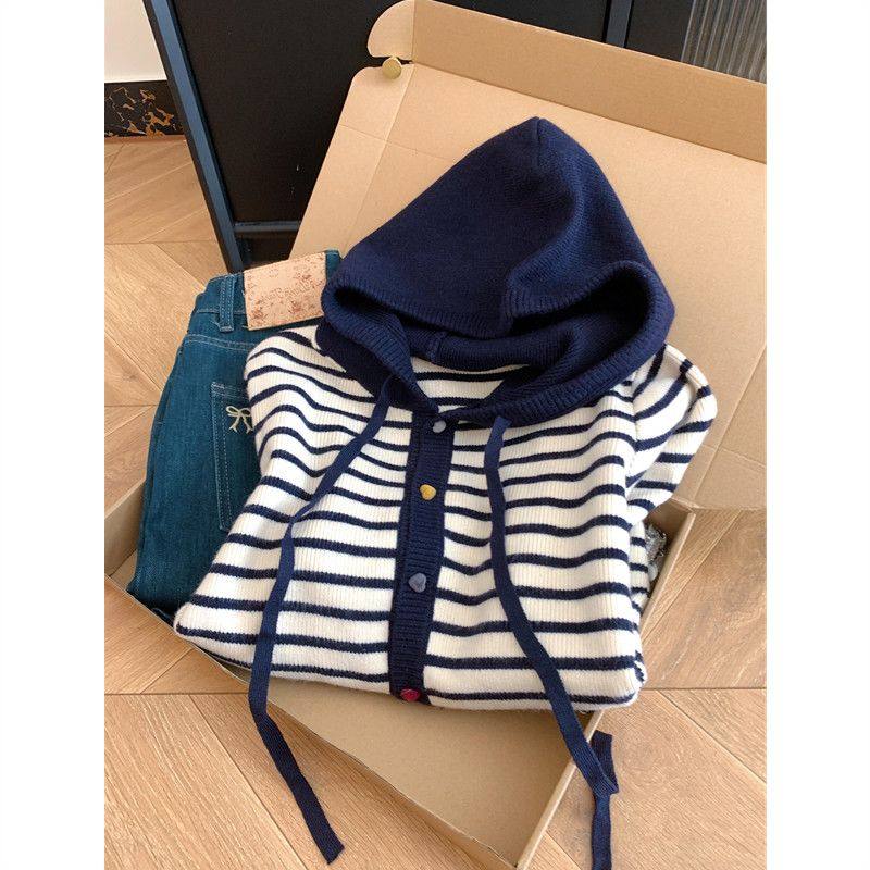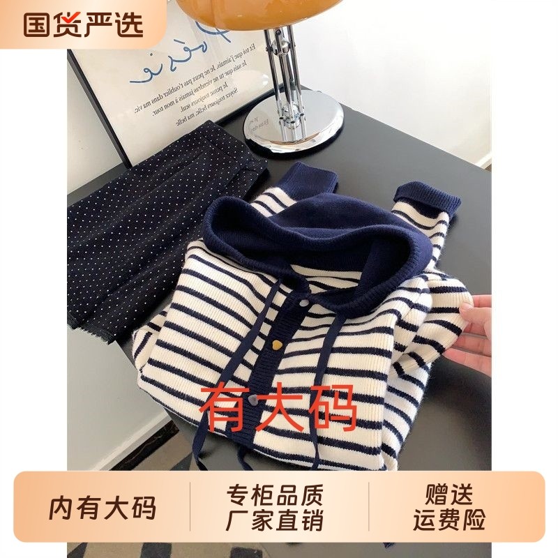 天猫1688官方工厂,越穿越喜欢~慵懒风条纹撞色纽扣针织开衫大码内搭女秋季新款外套