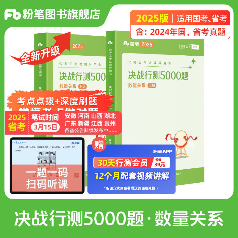 天猫粉笔图书旗舰店,粉笔行测5000题-数量关系2册,收录2024国考、省考真题 配套真题视频