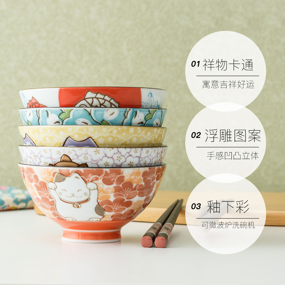天猫国际自营进口超市,千代源日本进口卡通餐具陶瓷碗,日本千代源卡通陶瓷碗,浮雕工艺,技艺精湛