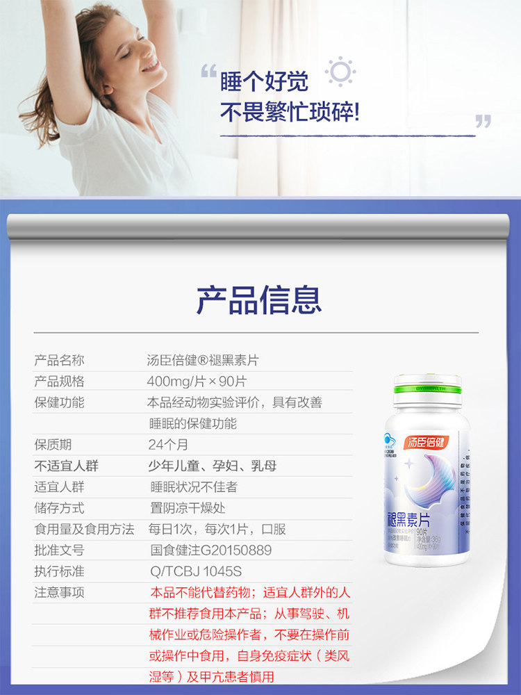 天猫阿里健康大药房,汤臣倍健褪黑素每晚一片改善睡眠,褪黑素+VB6 改善睡眠舒缓入眠享受深睡