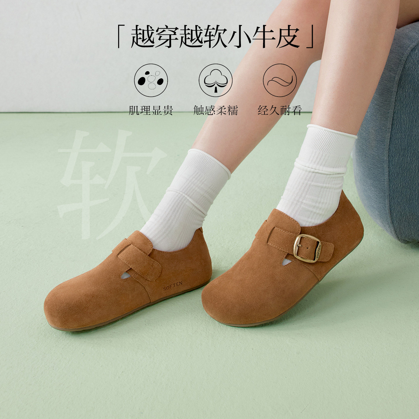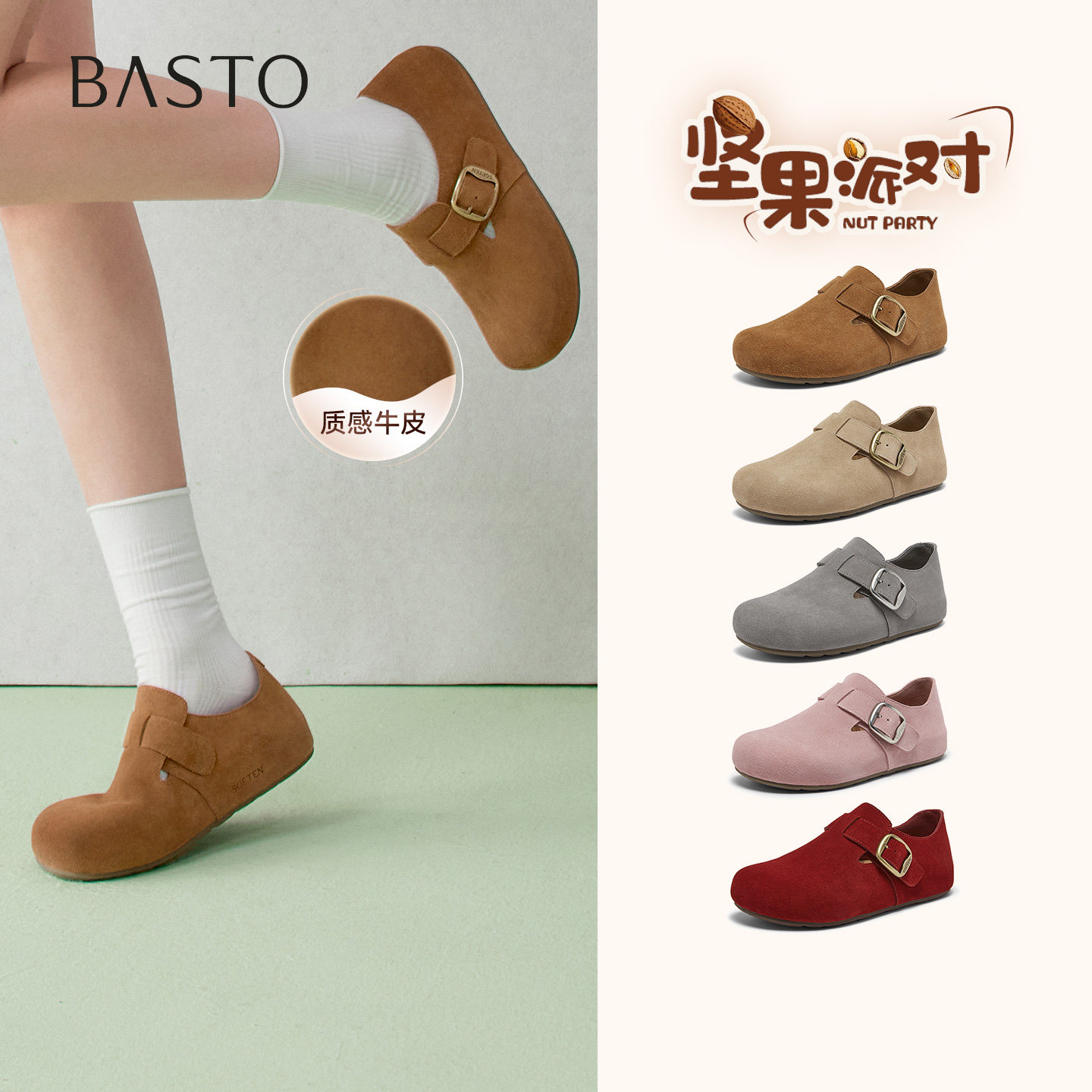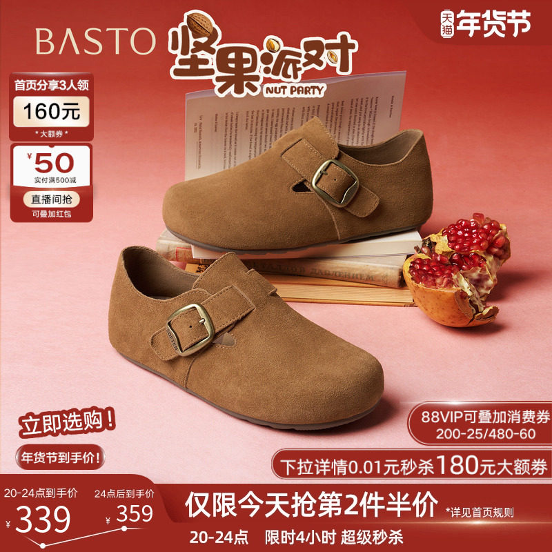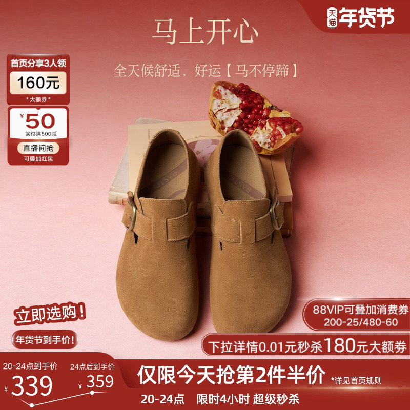 天猫百思图官方旗舰店,百思图2026春季商场新款真皮全包勃肯鞋懒人一脚蹬女单鞋T1178AM6,时尚潮流简约舒适