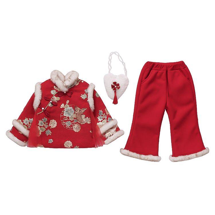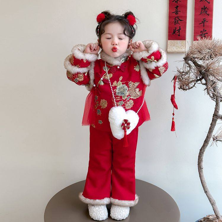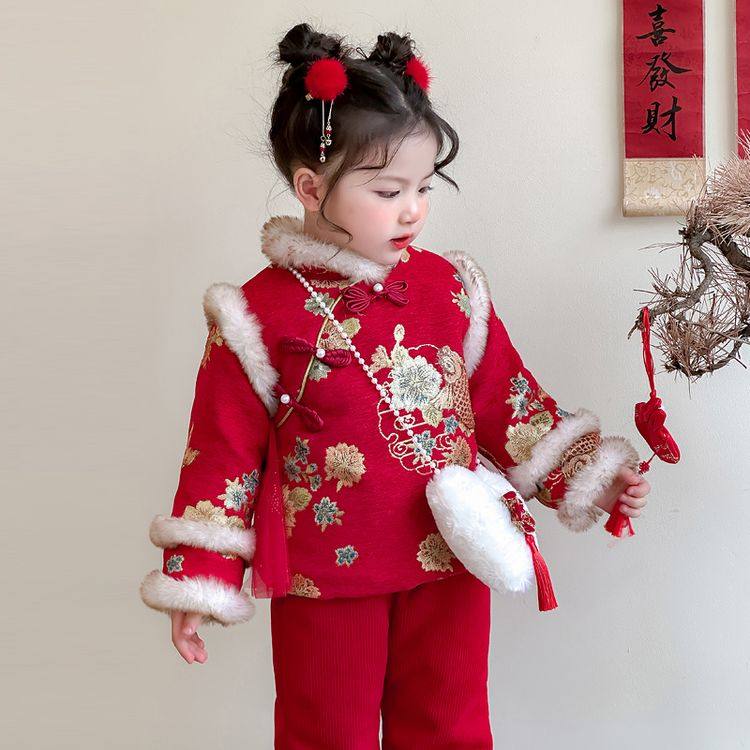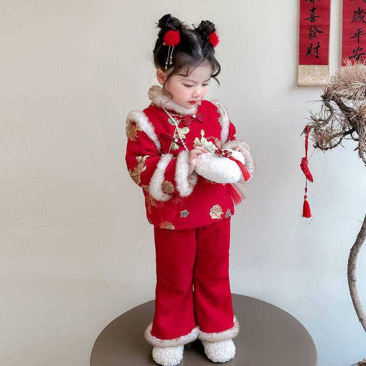 淘宝鹿圆童装店,女童拜年服冬装红色汉服儿童冬季国风喜庆新中式宝宝过年新年衣服