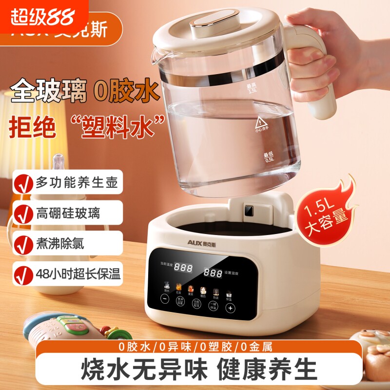 天猫淘工厂美妆直营,奥克斯全玻璃恒温壶调奶器烧水壶保温一体炖煮花茶壶婴儿养生煮茶