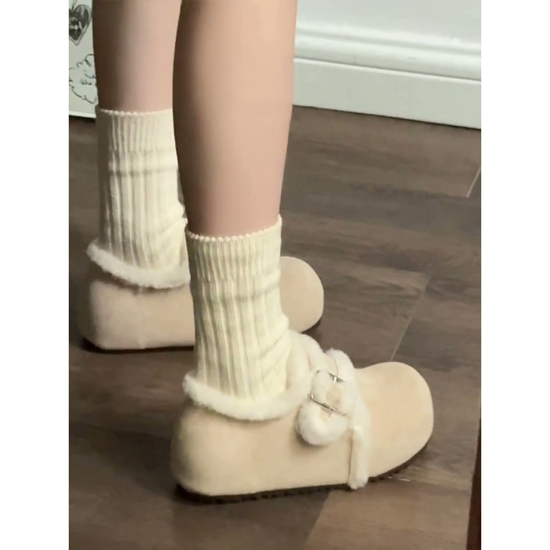 天猫淘工厂美妆直营,白色复古软底加绒勃肯棉鞋女2025冬季新款百搭保暖内增高毛毛单鞋