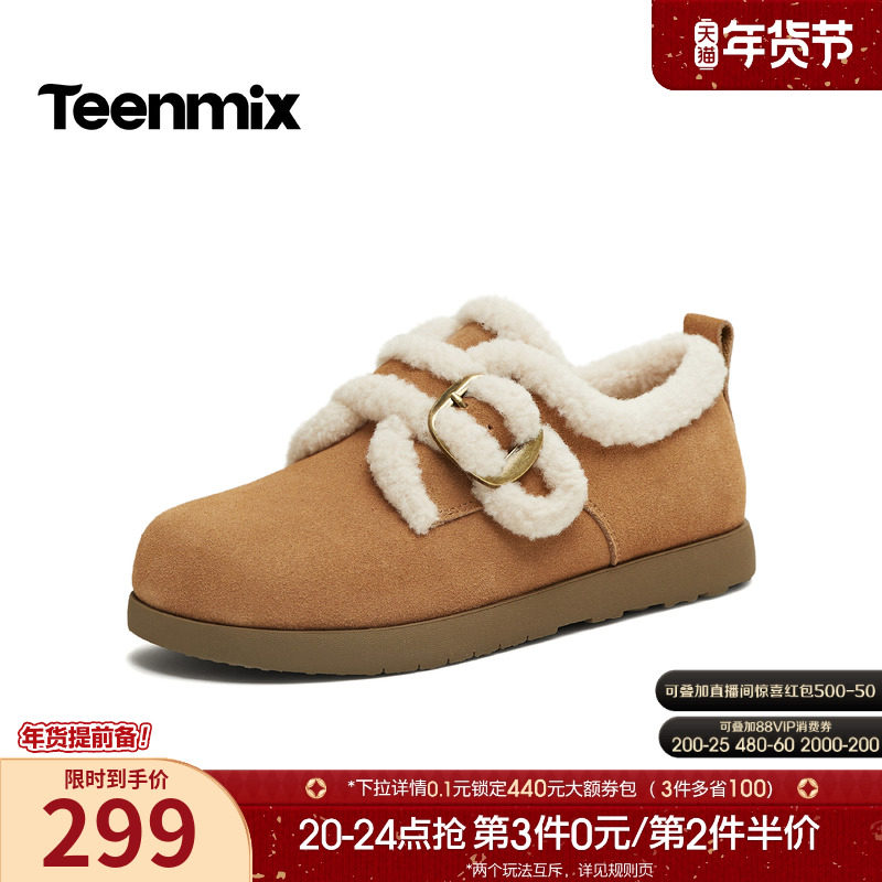 天猫天美意teenmix官方旗舰店,天美意复古加绒保暖勃肯毛毛鞋雪地靴女棉鞋短靴冬季新款KK083DM5,厚底百搭圆头复古