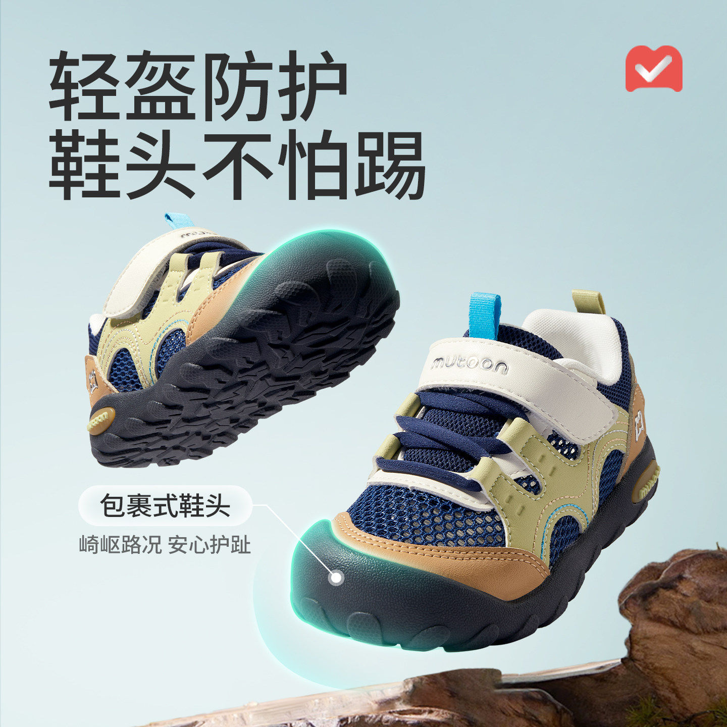 天猫牧童官方outlets店,牧童童鞋户外轻便防踢儿童运动鞋,轻盔防护鞋头防踢 吸湿网布内里