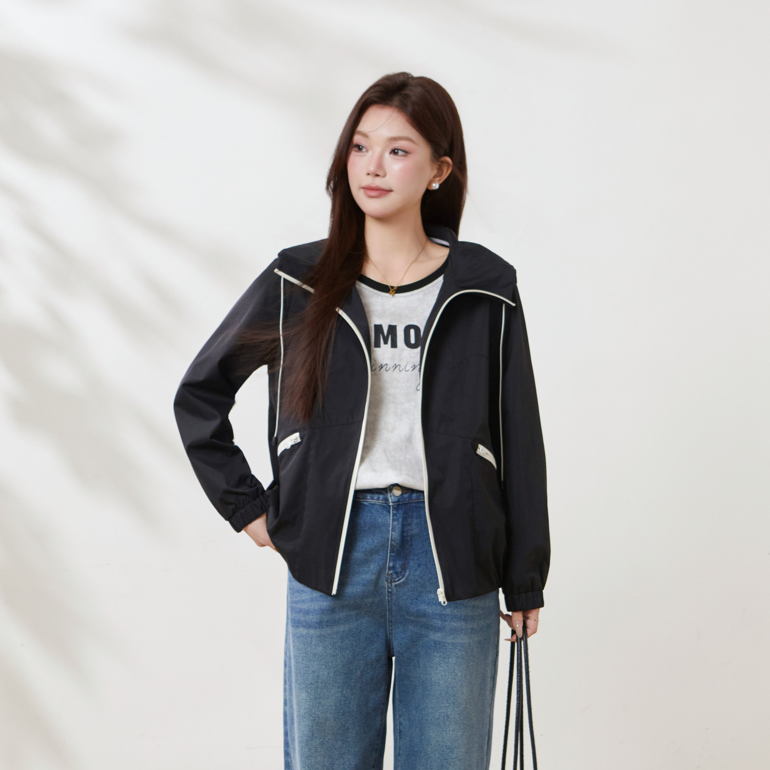 淘宝采多宝大码女装 胖MM清新甜美显瘦 定制大码,采多宝大码女装胖mm2026春季新款韩版撞色宽松显瘦连帽夹克外套