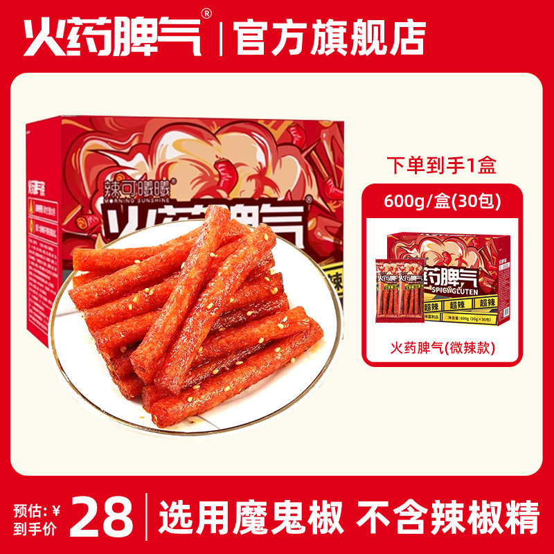 天猫火药脾气旗舰店,盒装辣条火药脾气休闲食品盒装,辣可曦曦盒装30包火药脾气超辣辣条童年辣条
