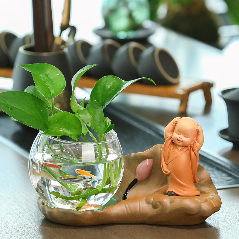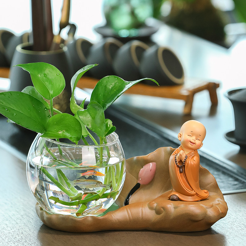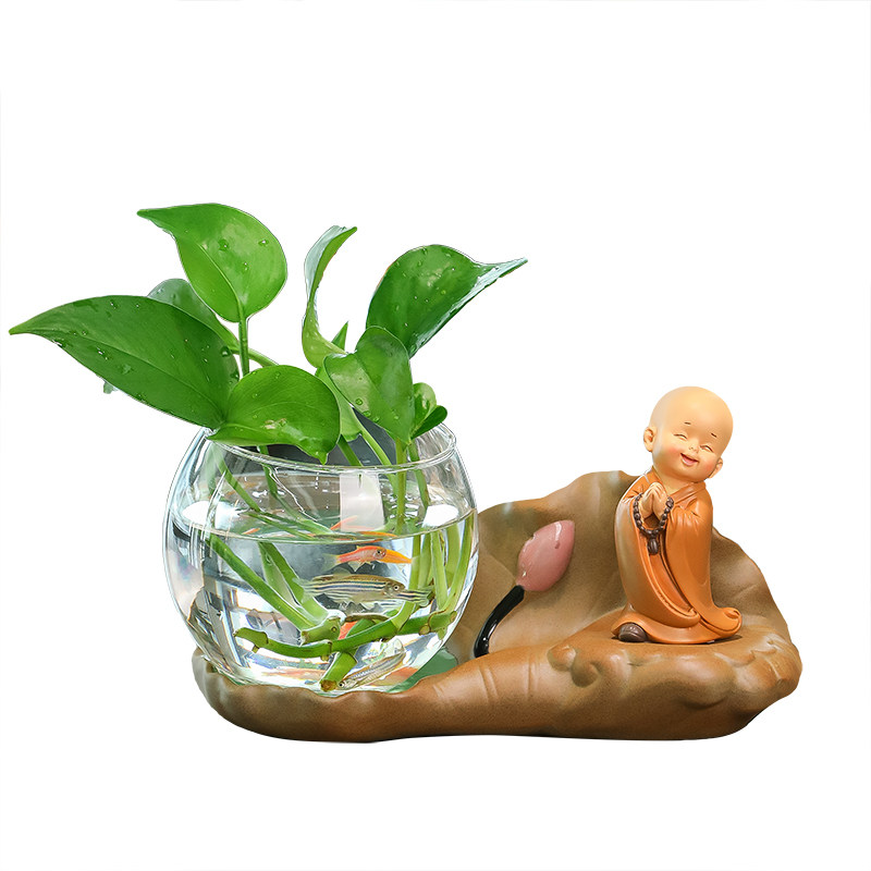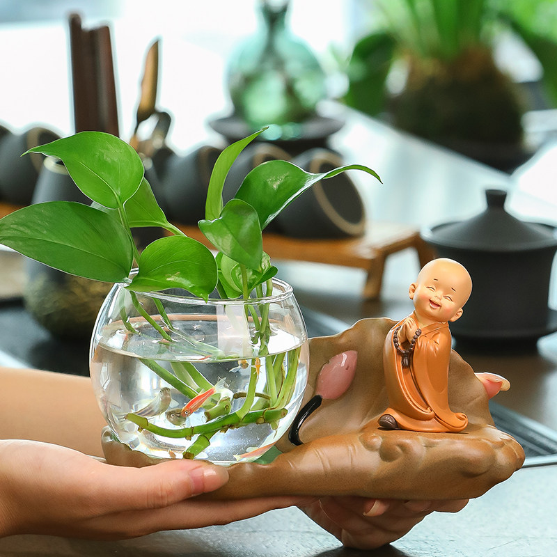 禅意小和尚桌面花瓶办公桌好物女生玄关工位飘窗书房客厅装饰摆件