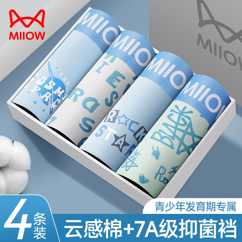 天猫miiow猫人洋翊专卖店,猫人青少年内裤发育期纯棉抑菌,7A级抑菌裆 高弹无束缚 发育期专属