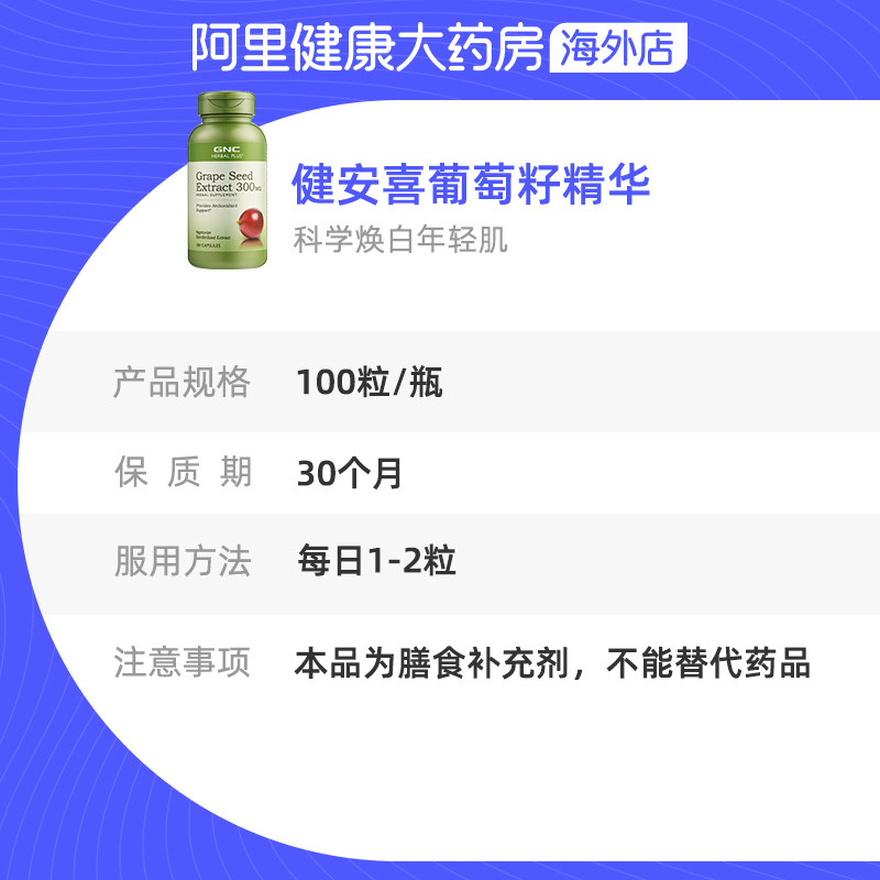 天猫阿里健康大药房海外店,进口葡萄籽胶囊GNC/健安喜