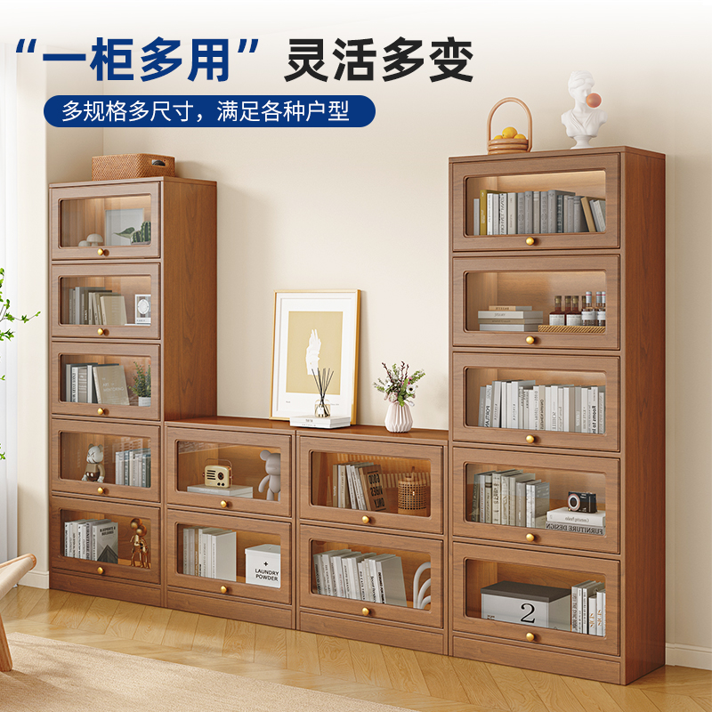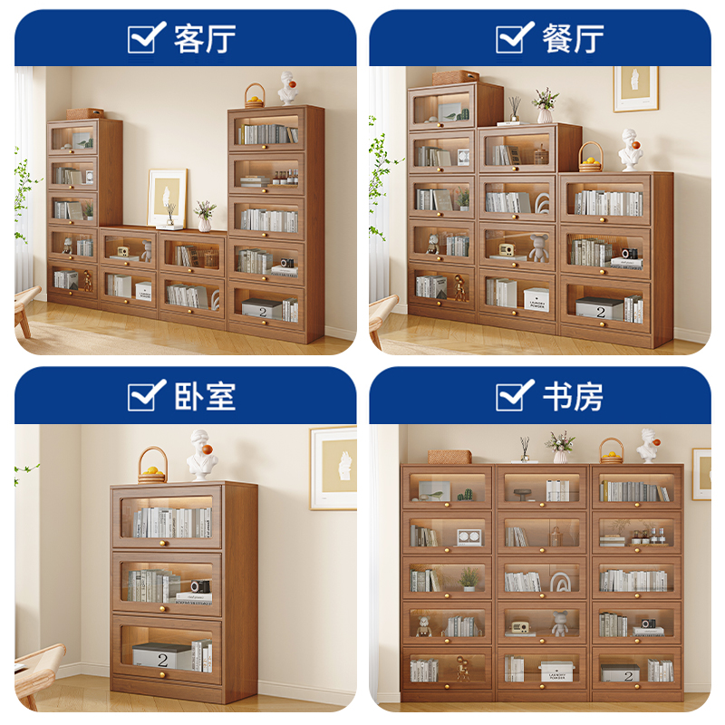 天猫恒栎旗舰店,防尘实木带玻璃书柜置物柜
