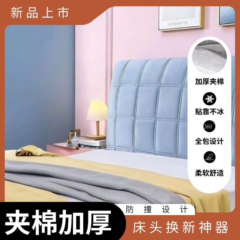 夹棉高档床头套罩加厚高档轻奢遮丑神器木床皮床靠背软包布艺靠垫
