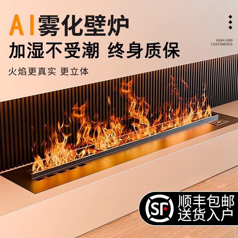 淘宝科虹壁炉直销工厂,不锈钢3d雾化壁炉仿真火嵌入式装饰客厅地台火焰加湿器氛围灯1米