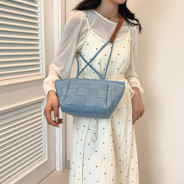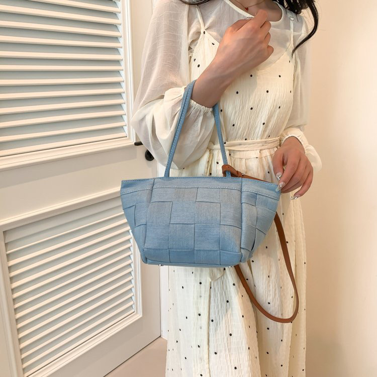 淘宝LIULIU Y 小众包包,夏天牛仔帆布编织菜篮子包包女2024新款高级感小众轻奢手提水桶包