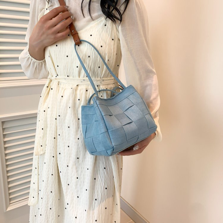 夏天牛仔帆布编织菜篮子包包女2024新款高级感小众轻奢手提水桶包