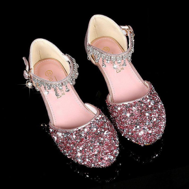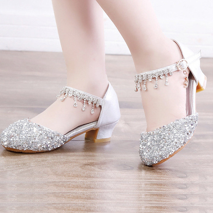 淘宝美美公主童鞋店,爱莎水晶礼服钢琴走秀银色女童鞋