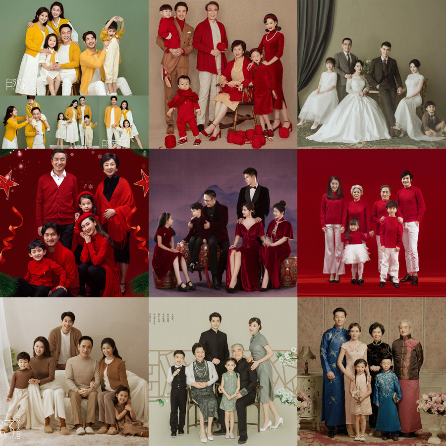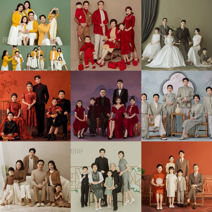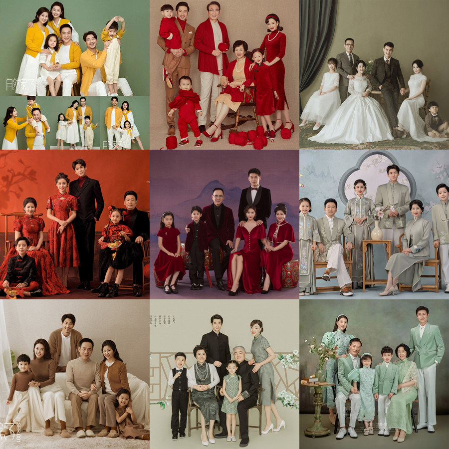 淘宝好奇的 宝宝,新款一家六口拍照复古亲子装礼服