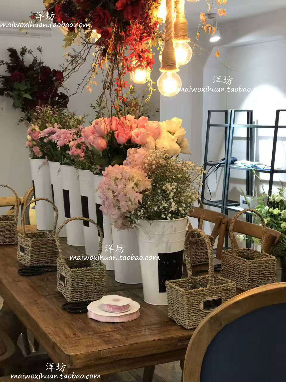 淘宝洋坊,花店家用深水鲜花醒黑板大号铁花筒