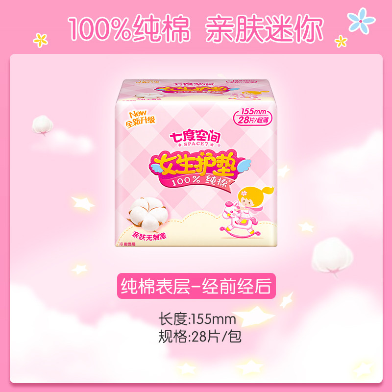 天猫七度空间恒阜专卖店,七度空间卫生巾少女2828片量贩装,28片装 5盒量贩 轻薄护垫 纯棉材质