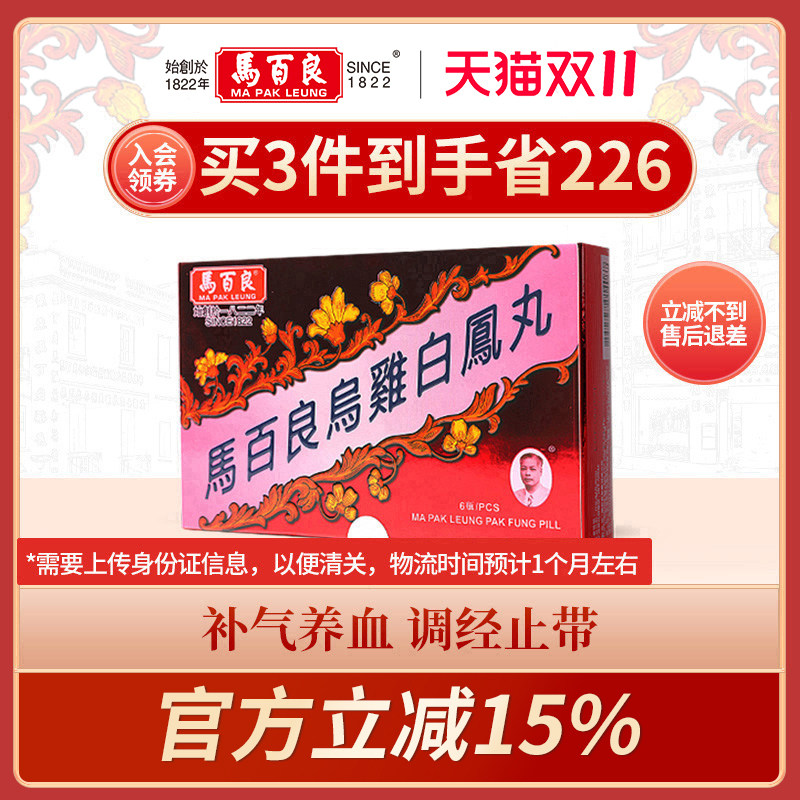 天猫马百良海外旗舰店,中国香港马百良乌鸡白凤丸港版调经缓解痛经补气养颜正品6瓶/盒 C,补气养血 调经止带