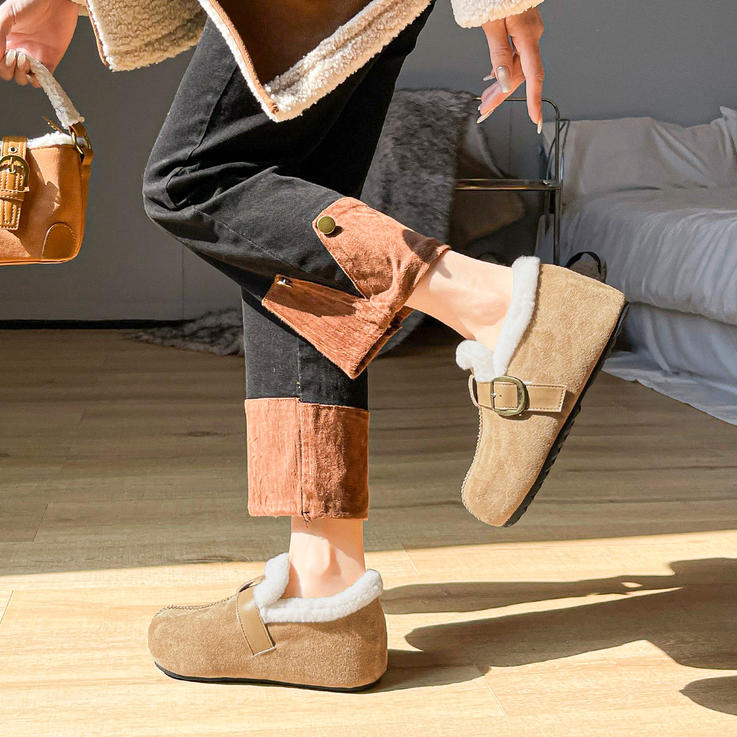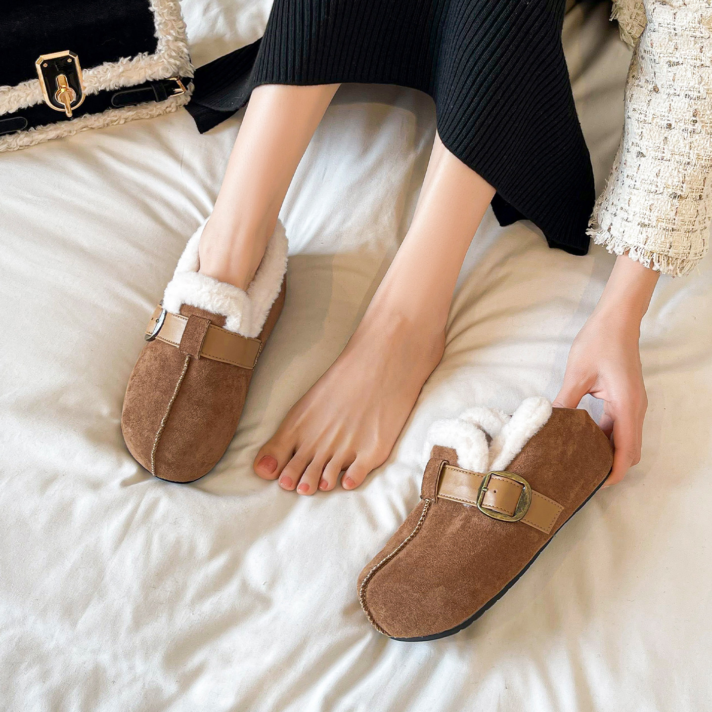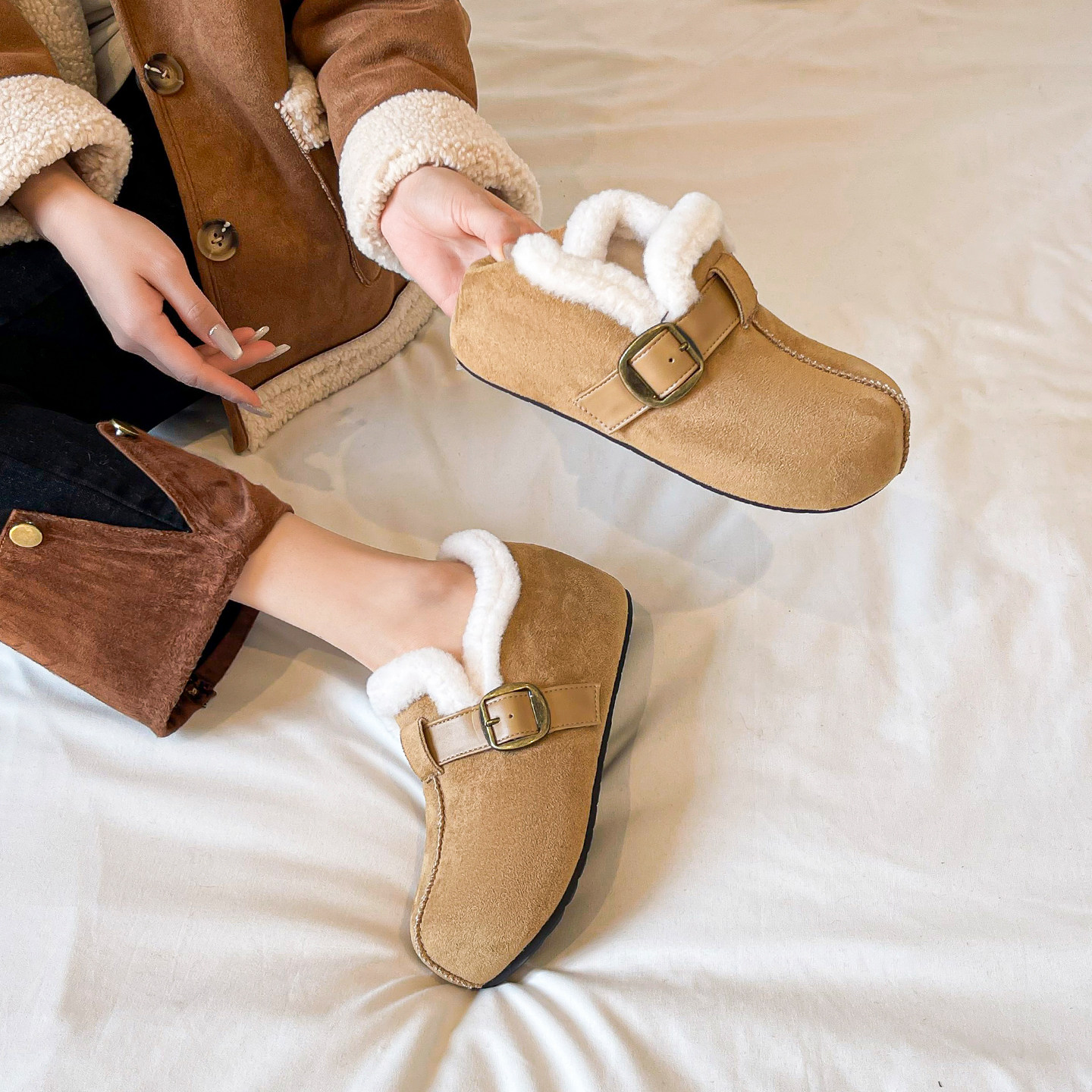 羊皮!勃肯鞋女2025新款极简风灰色圆头可踩脚两穿保暖内增高棉鞋券后价¥150.8Mona高端定制女鞋 33 分前