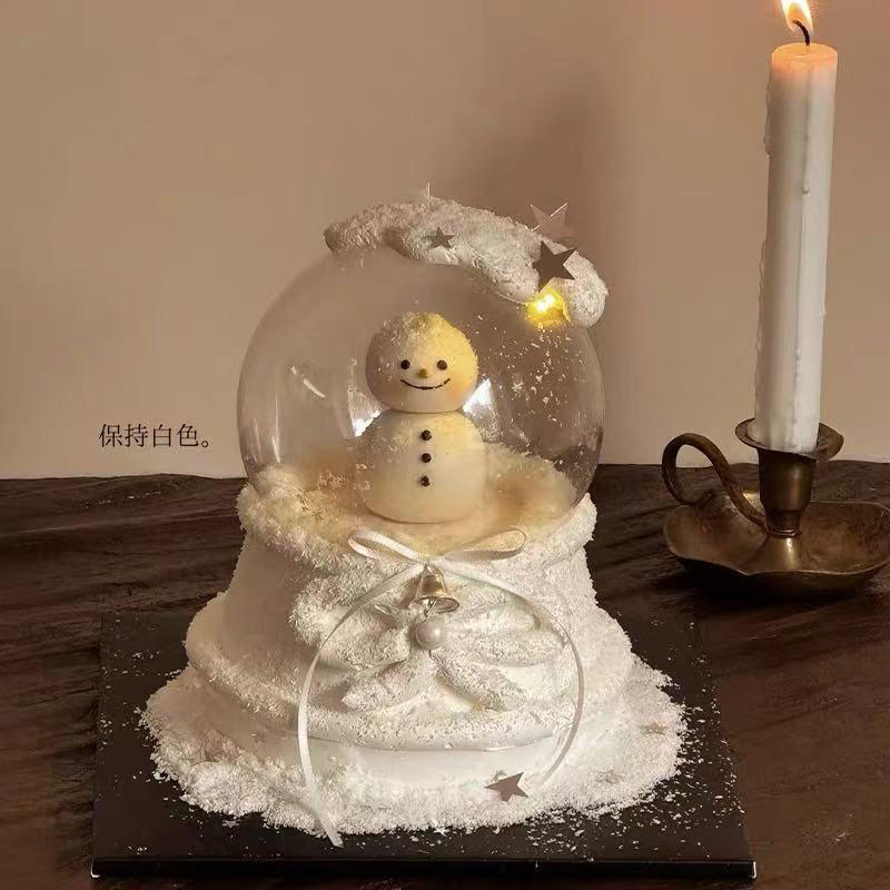 淘宝遇见你烘焙,小红书同款圣诞节水晶球雪人蛋糕装饰摆件银色五角星亮片装扮插件