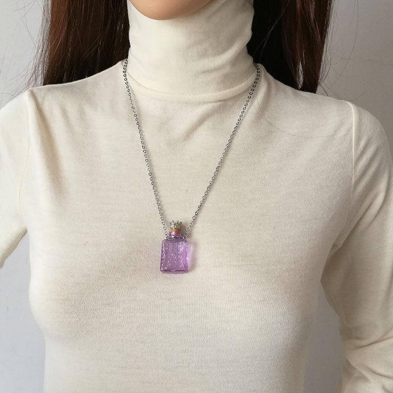 皇冠朱砂胎毛琉璃精油瓶吊坠项链毛衣链香薰香水瓶挂件女礼物盒装