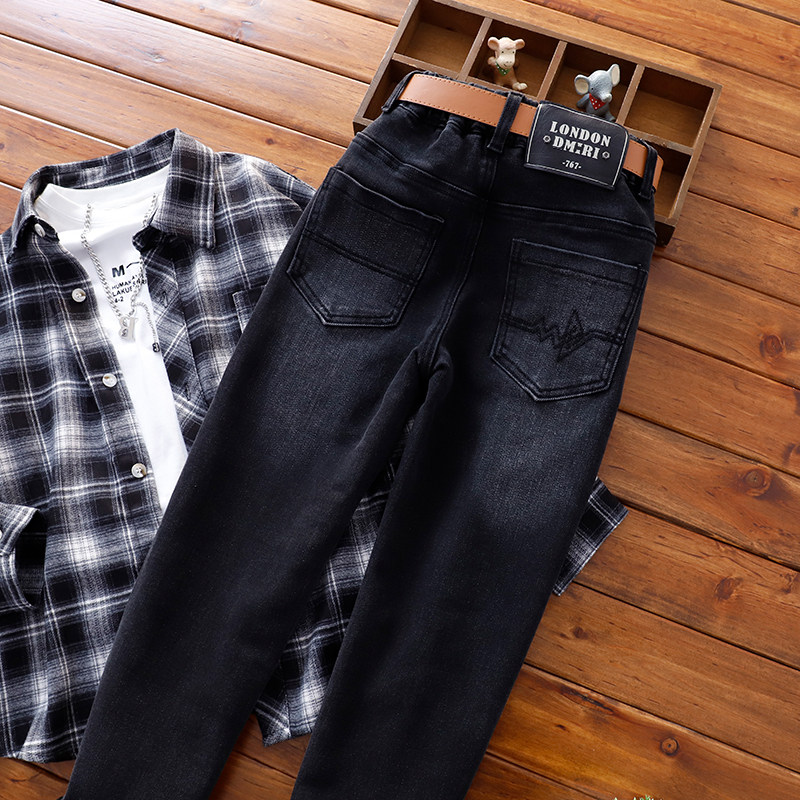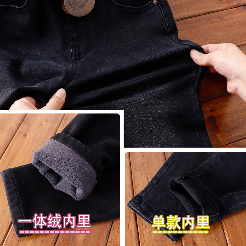 淘宝泱泱童装,男童修身瘦版加绒加厚牛仔裤冬