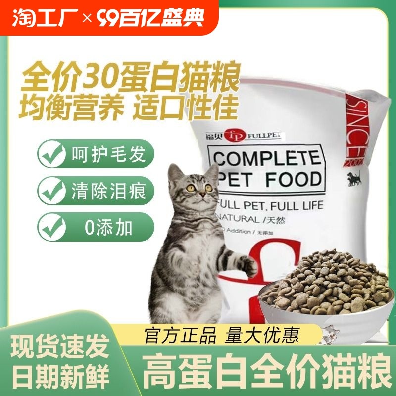 天猫天天特卖工厂店,福贝猫粮厂家直销30蛋白多猫家庭流浪猫喂养营养发腮粮,上海福贝直供,品质保证