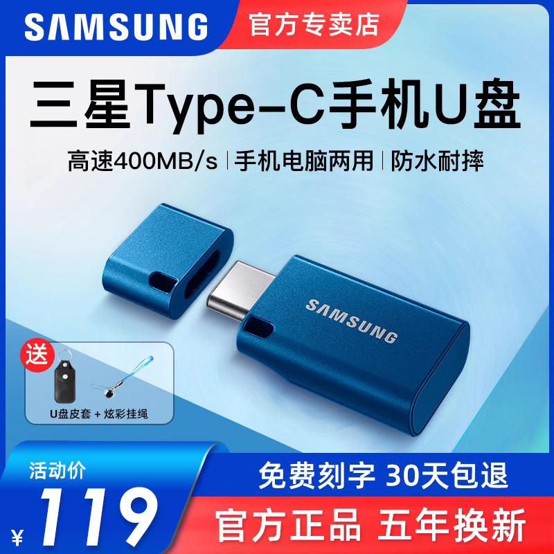 天猫三星讯州专卖店,【Type-c接口】高速手机u盘128g,防水防摔 坚固耐用 Type-C接口 高速400MB
