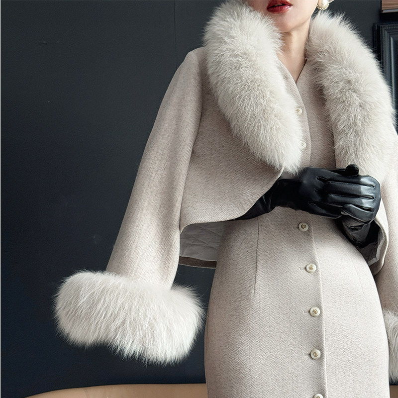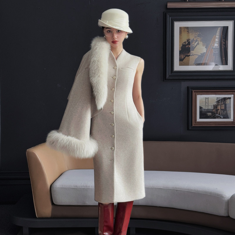 淘宝Twang工作室,TWANG天丝羊毛狐狸毛马甲裙套装