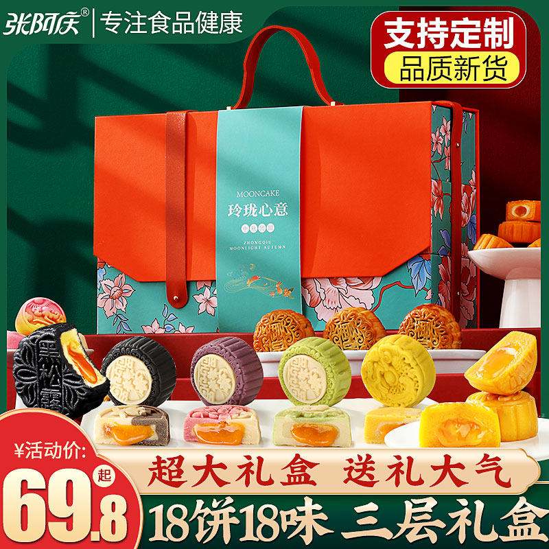 天猫张阿庆旗舰店,超大三层月饼礼盒大分量更好气,轻奢款18饼18味 超大三层礼盒 超重礼盒