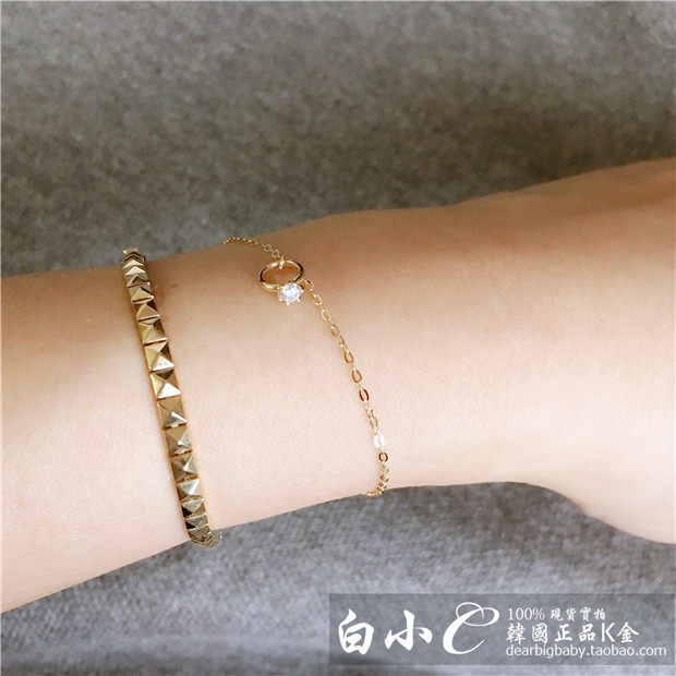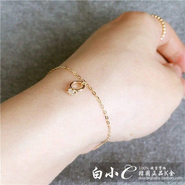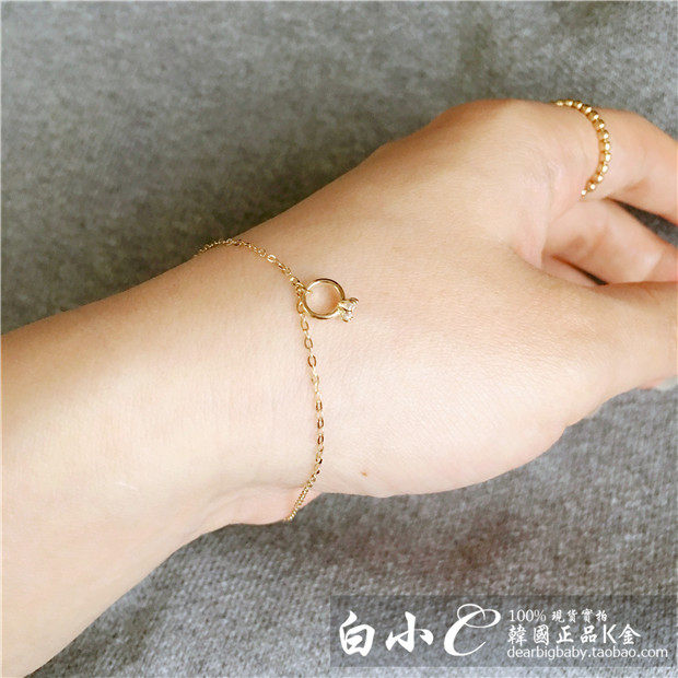 淘宝千家卓百货供应27,2023韩国进口纯14K金首饰 精致迷你惹人爱闪闪小钻戒手链黄金纯金