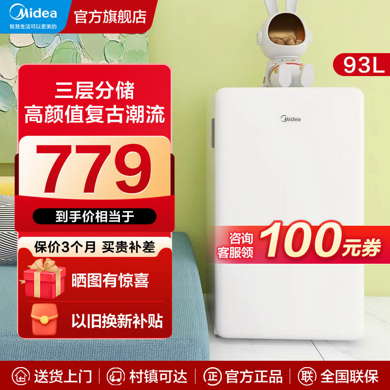 天猫美的商用冷柜旗舰店,美的93L单门母婴美妆一级能效冰箱迷你小型复古冷藏节能家用省电