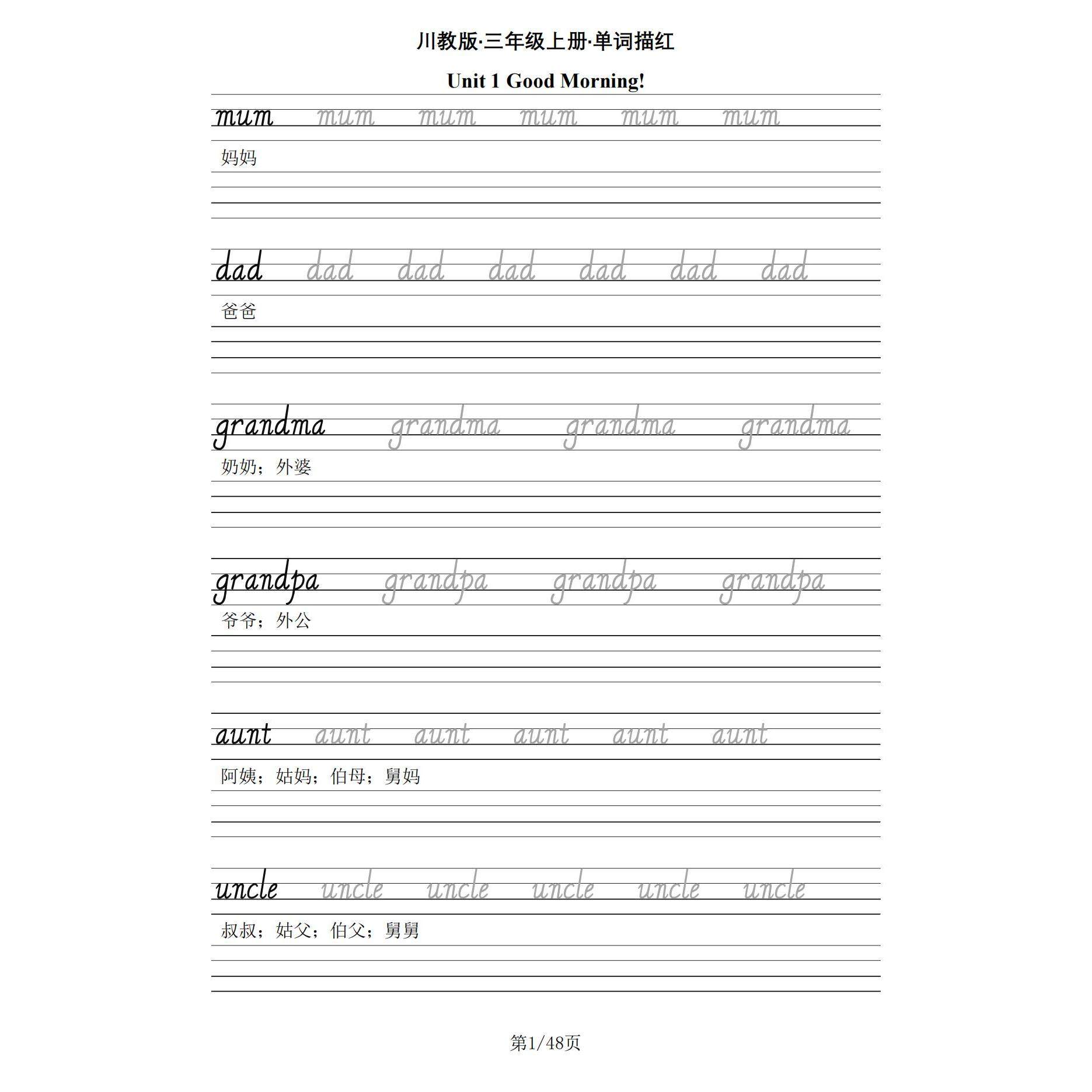 淘宝226517681417966241,川教版3-6年级英语英文单词字帖