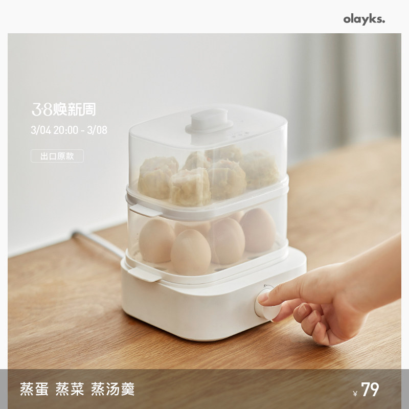 天猫olayks雅都专卖店,olayks煮蛋器家用多功能小型蒸鸡蛋,双层蒸蛋器 陶瓷釉底 不结水垢易清洗
