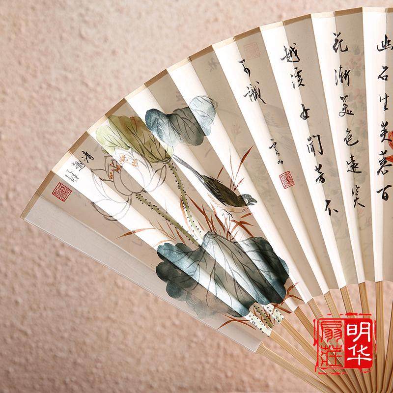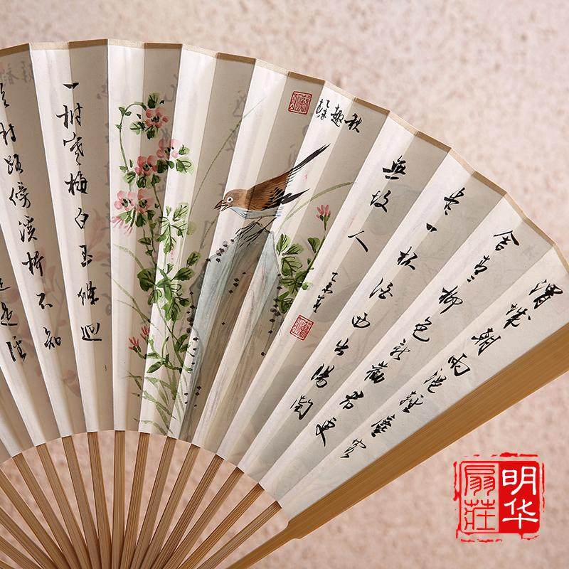 淘宝明华扇庄,男式9寸手绘白纸扇中国风礼品扇