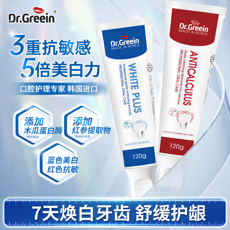 淘宝禾稻正弘进出口企业店,韩国原装进口格芮茵Dr.Greein牙膏薄荷清新口气亮白牙膏120g
