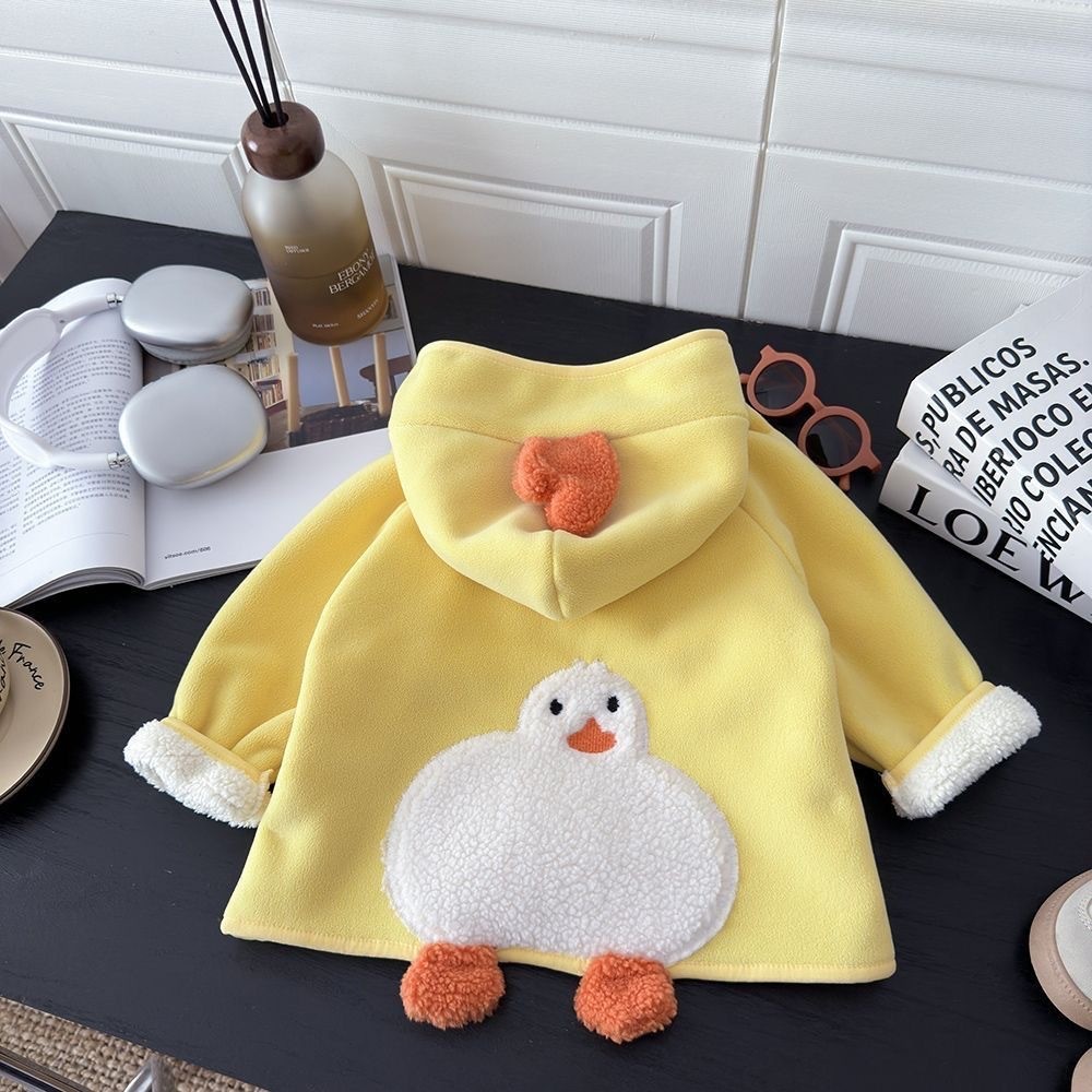 天猫萌森鸭旗舰店,卡通风儿童加绒加厚连帽毛绒外套