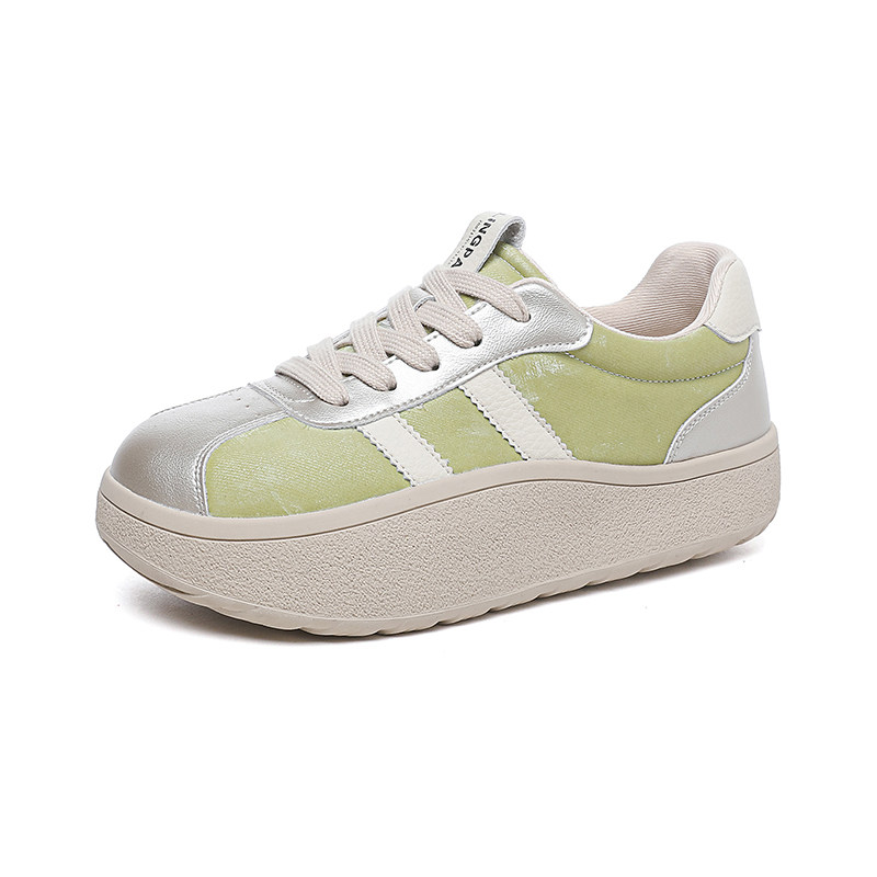 天猫1688官方工厂,小个子板鞋女内增高5cm3cm防滑厚底系带舒适百搭显瘦绿色休闲鞋女
