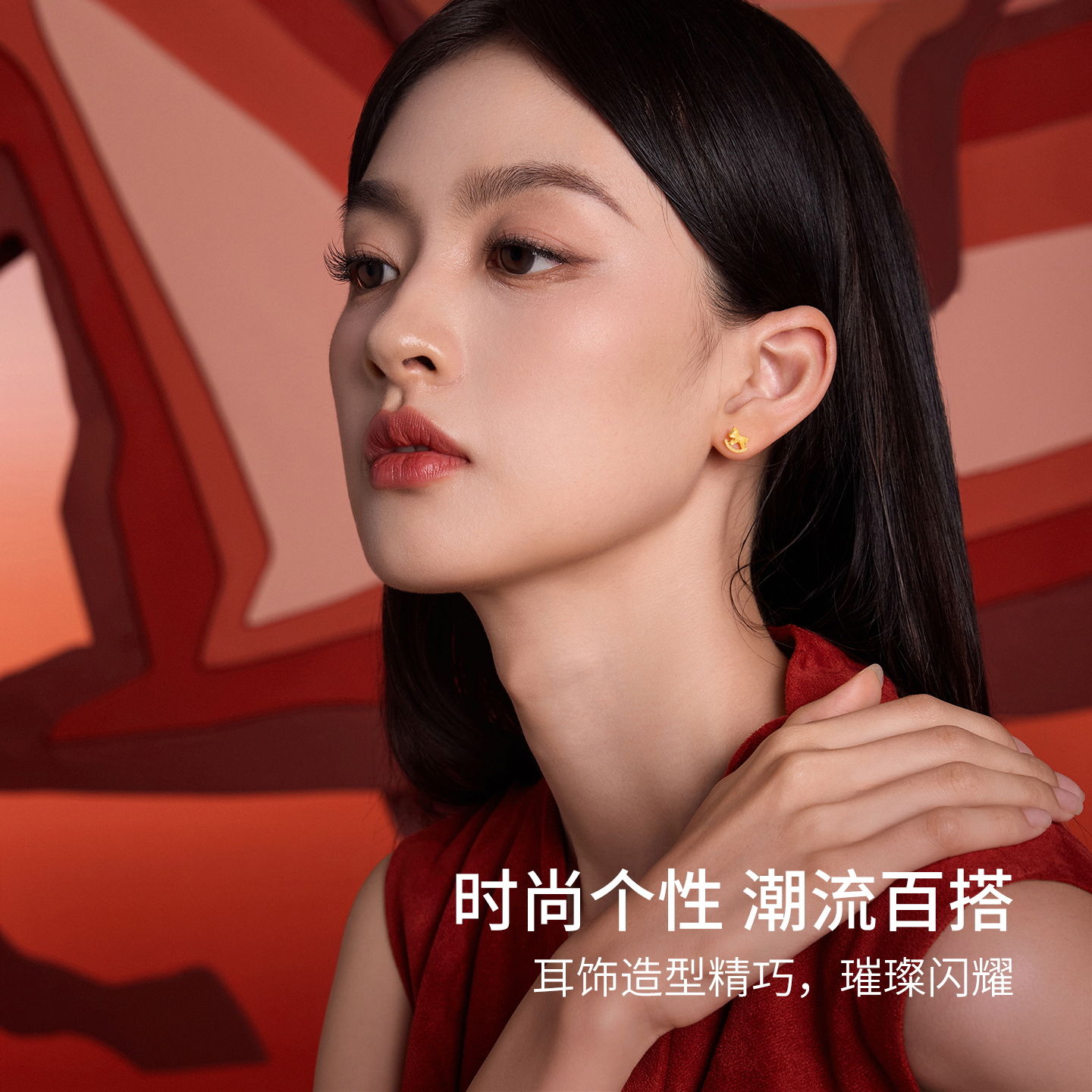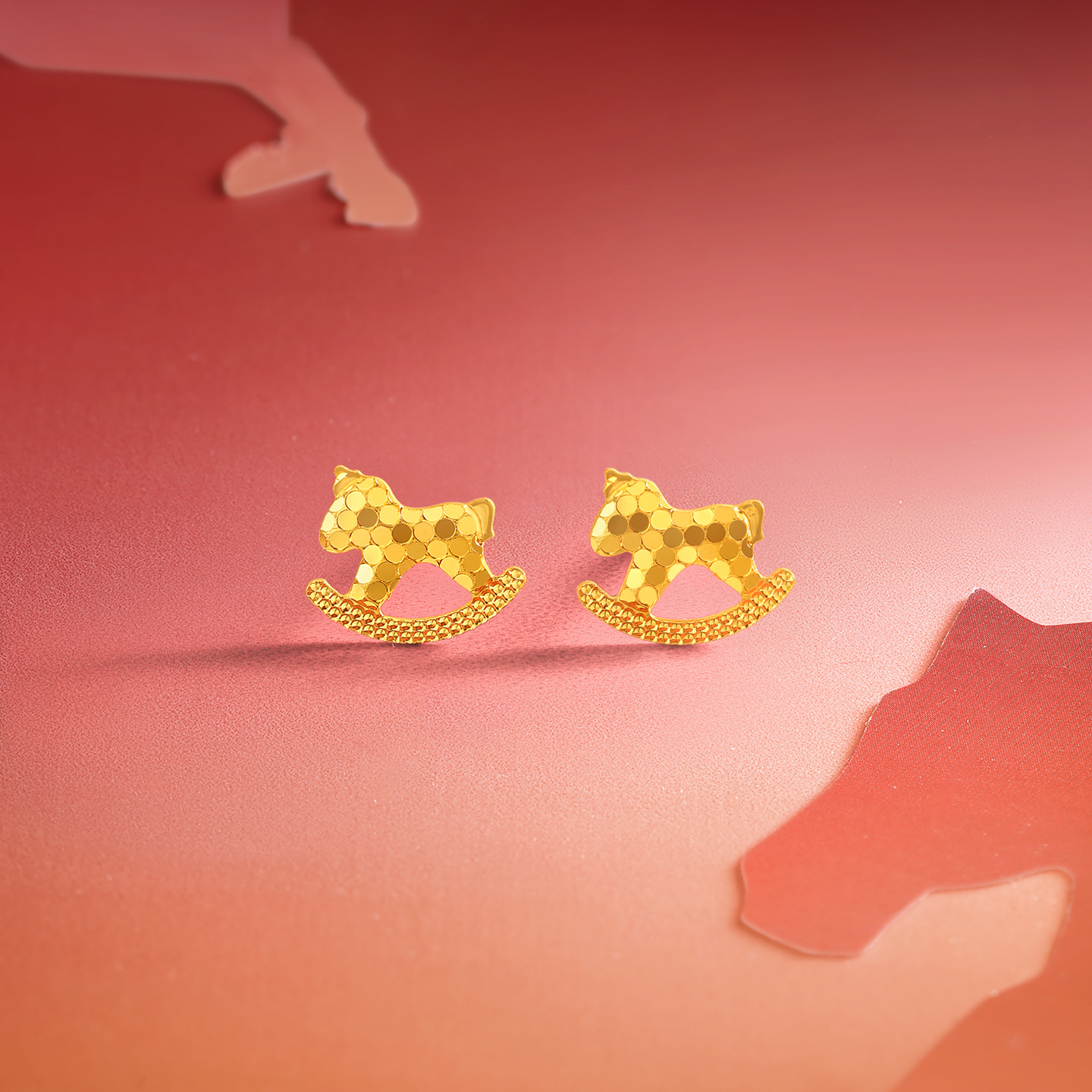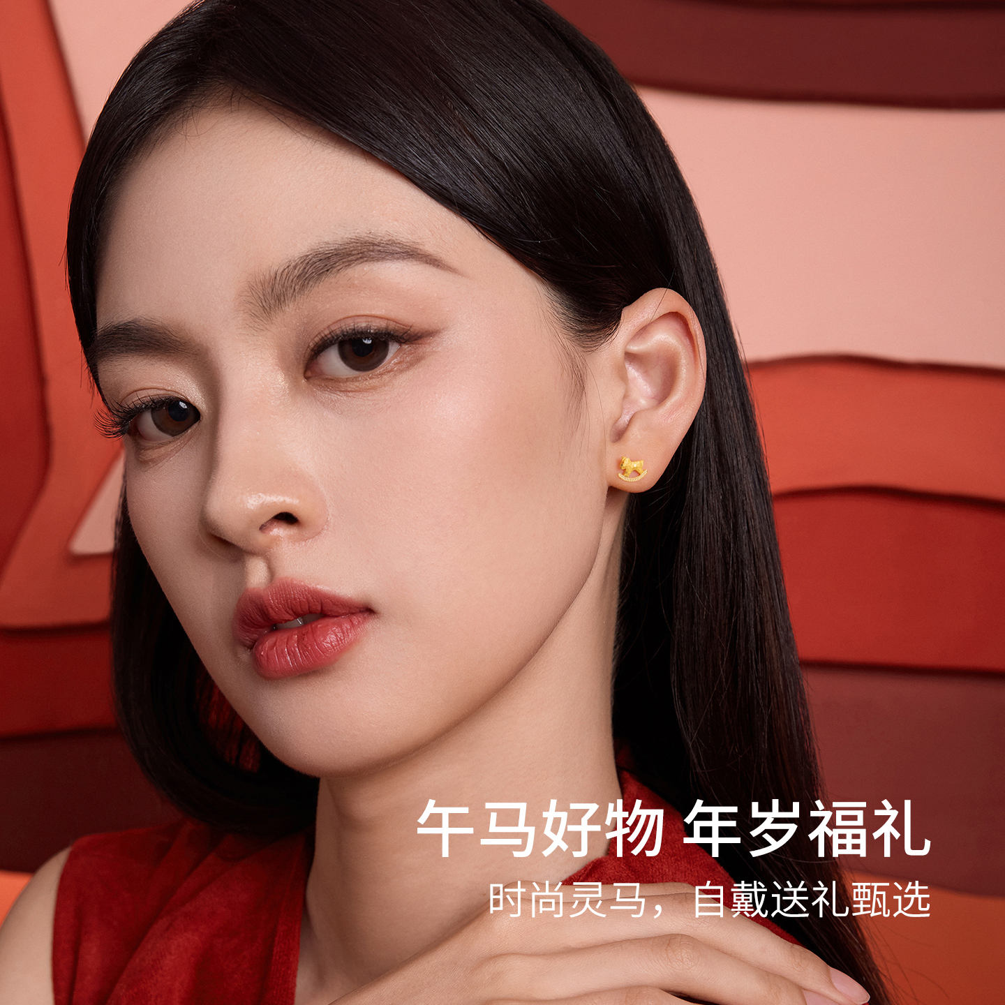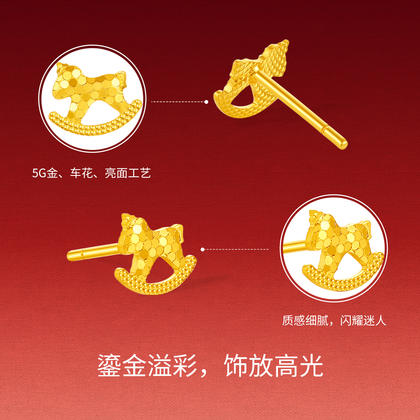 天猫周六福旗舰店,周六福黄金5G计价足金耳钉福运金彩木马耳饰生肖马系列圣诞礼物