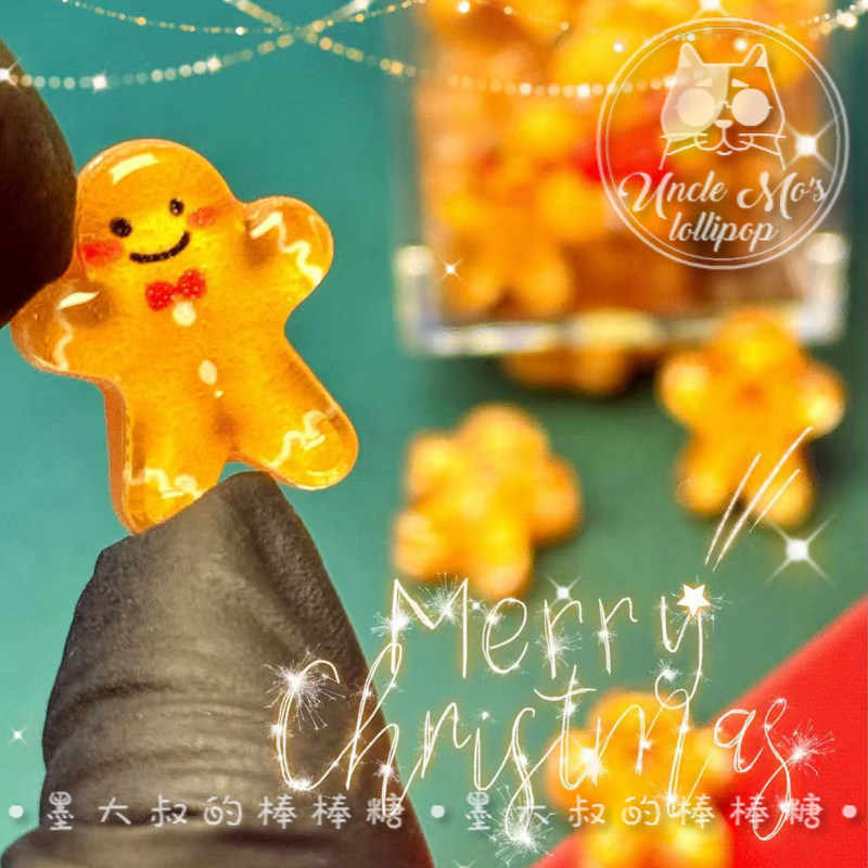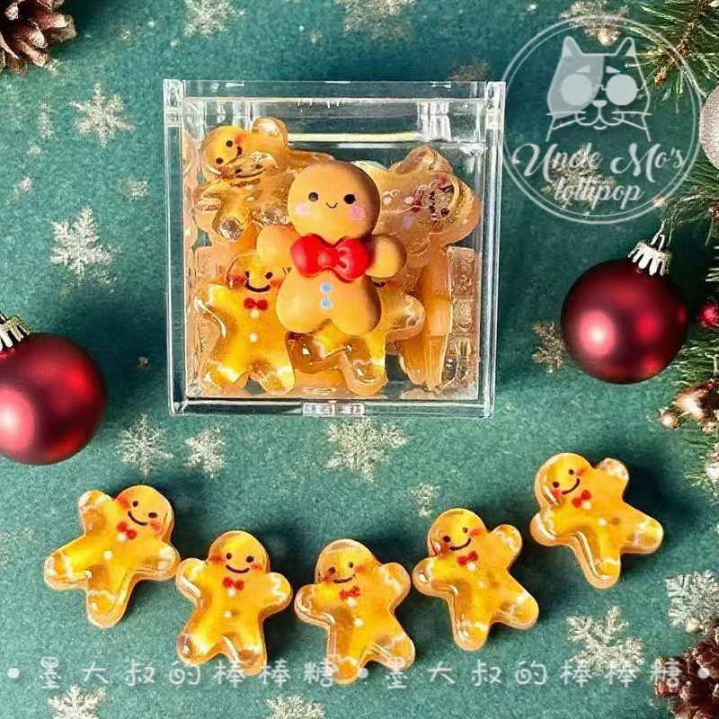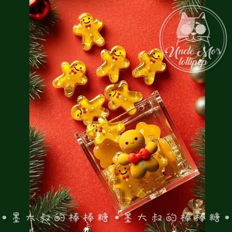 淘宝墨大叔的棒棒糖,可爱姜饼人礼盒独家设计圣诞老人礼物糖果定制墨大叔大棒棒糖零食