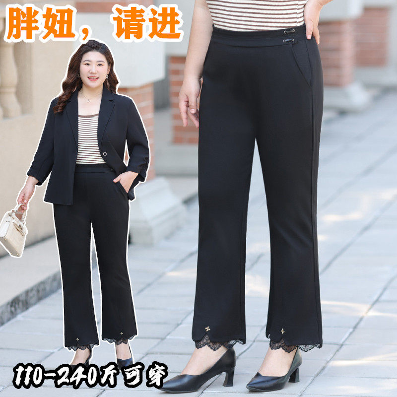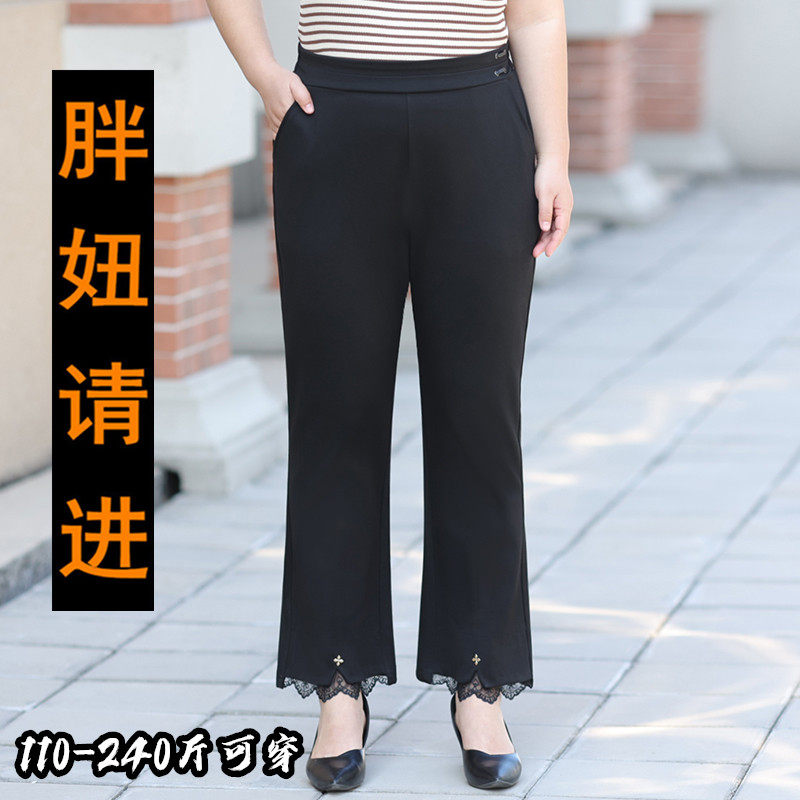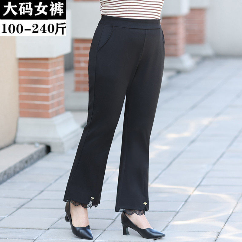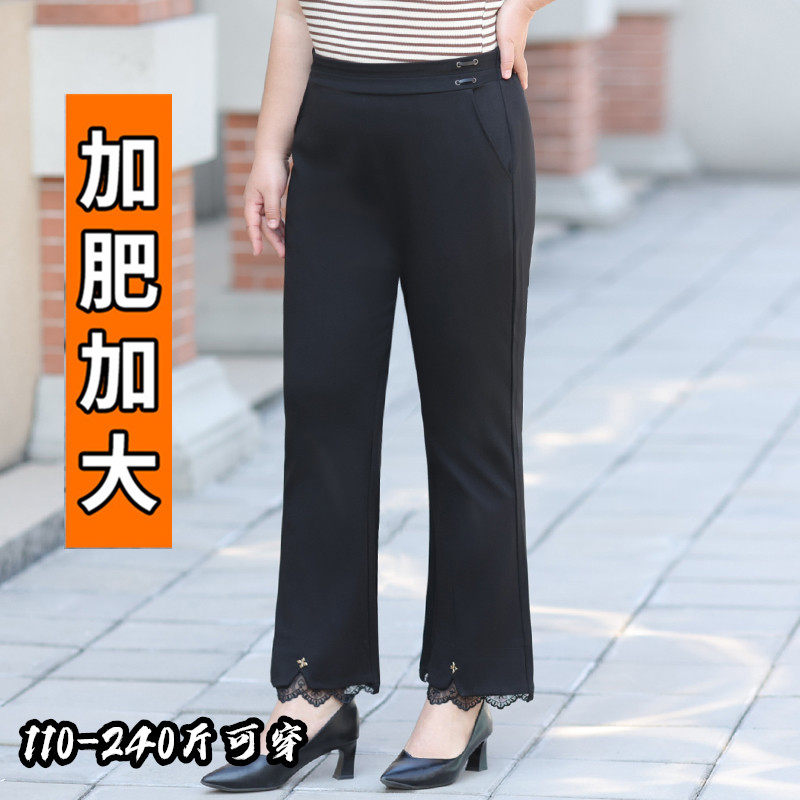 淘宝百依姿大码女装,春夏加肥大码女裤胖mm垂感显瘦蕾丝边梨型身材休闲微喇裤子 200斤
