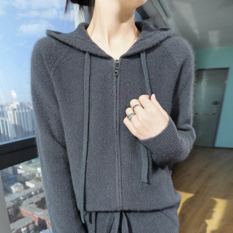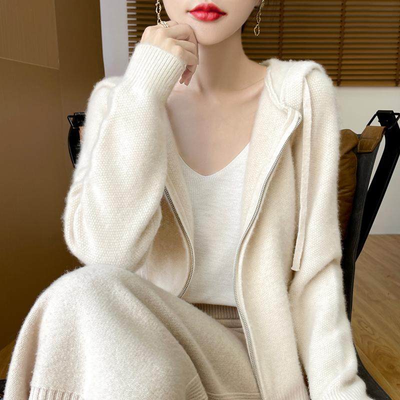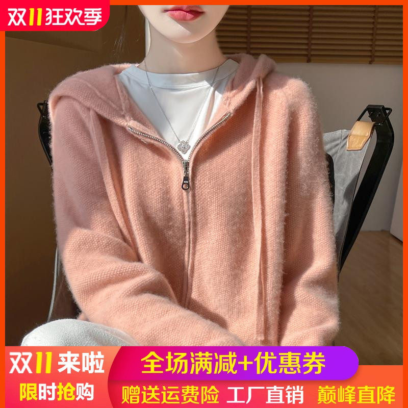 淘宝梦茜韵高端羊绒衫工厂直销店,秋冬连帽纯羊绒开衫宽松加厚外套